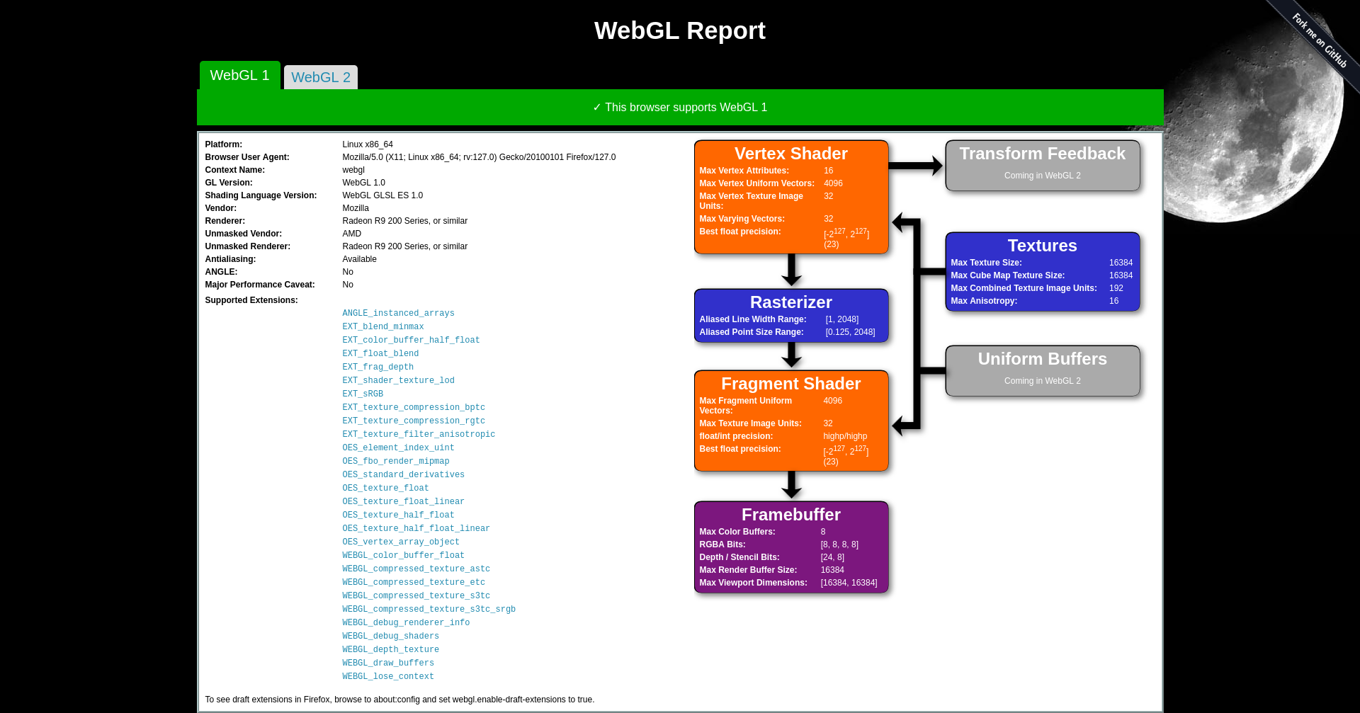 Es reicht aus, wenn bei WebGL 1 die Meldung “This browser supports WebGL 1” angezeigt wird.