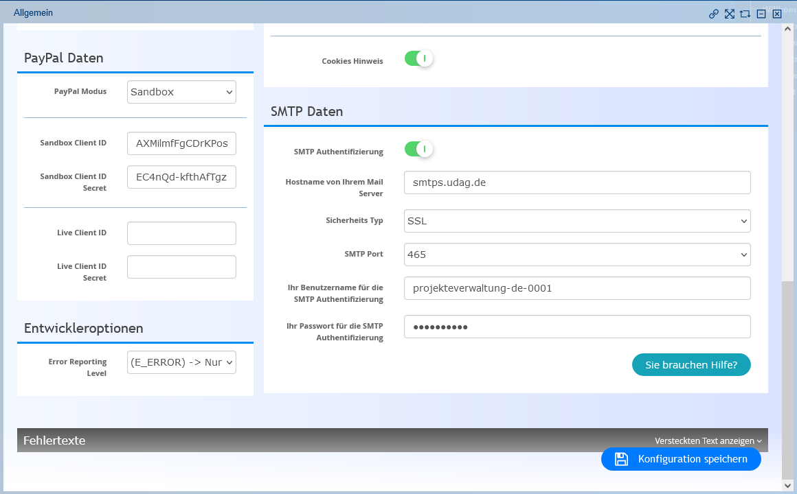 Bei uns auf dem Server sind die SMTP-Daten in der Klasse SYSTEM\CORE\SendMail fest eingetragen, um einen E-Mailversand von unserem Server aus zu gewährleisten.